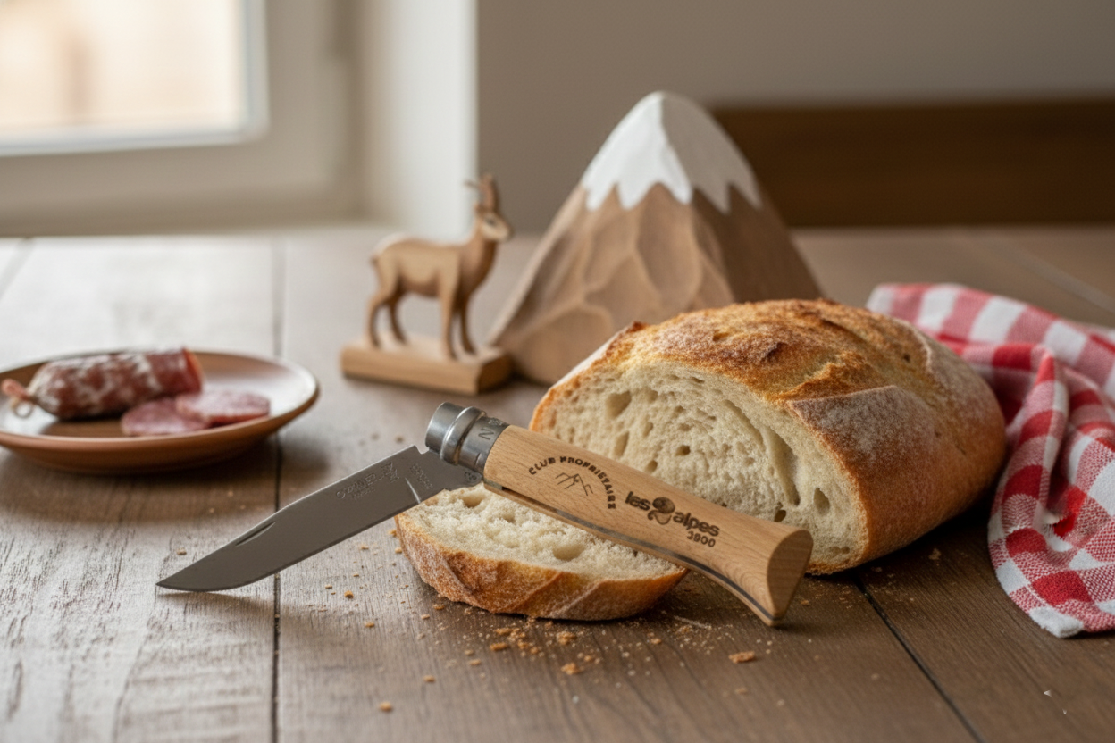 Édition spéciale propriétaires. L’incontournable couteau de poche N°08 Lame inox 8.5 cm (résistant à la corrosion) Manche en hêtre naturel.